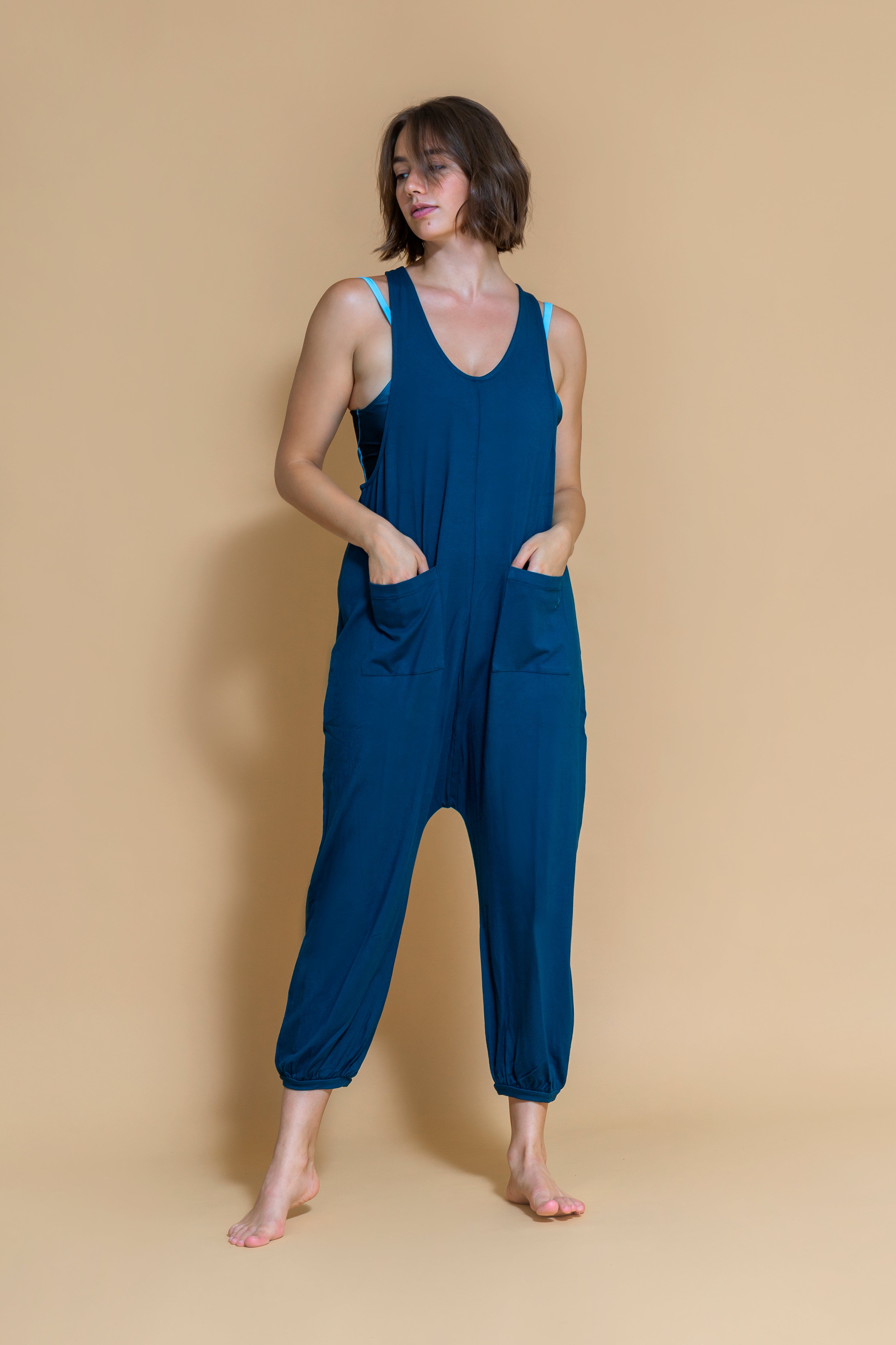 Discover yoga wear designed by yogis for your yoga practice. The pure comfort of bamboo fabric in this jumpsuit, carefully crafted to bring you a natural experience. Embrace the gentle touch of nature with its softness and breathability, making it ideal for yoga practice and everyday wear. Let the essence of nature envelop you in comfort and style as you embark on your journey of mindful living.